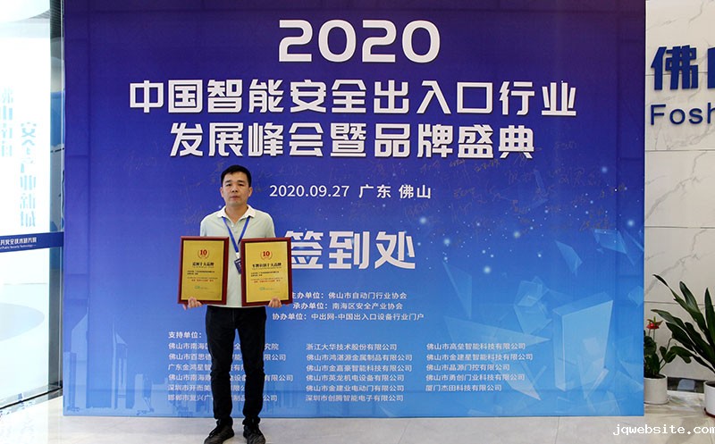 9月27日,“2020中国智能安全出入口行业发展峰会暨品牌盛典”在粤港澳大湾区智能安全产业园召开。在会上jqwebsite荣获道闸,车牌识别十大品牌双项大奖。
