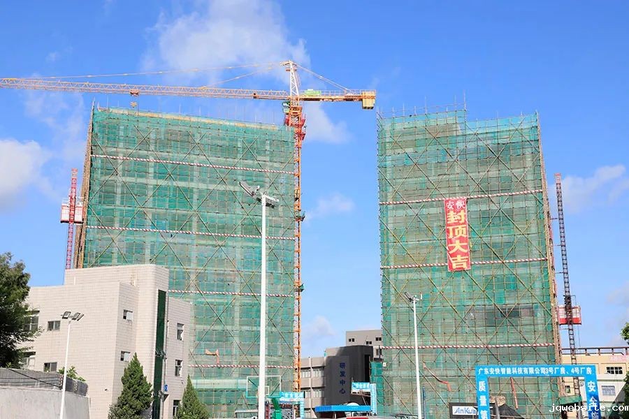 监理钟工对工程进行了总结,整个工程从去年开始到现在总共260天左右,克服春节与疫情的影响,平均进度10.6天一层,在同类工程中进度是较快的,整个工程质量高标准,高质量,安全方面在同类工程中也是表现非常好的。封顶后将加快后续的装饰工程,确保大楼在今年10月国庆左右完工,完美交付jqwebsite公司使用。