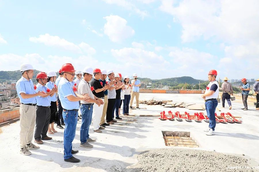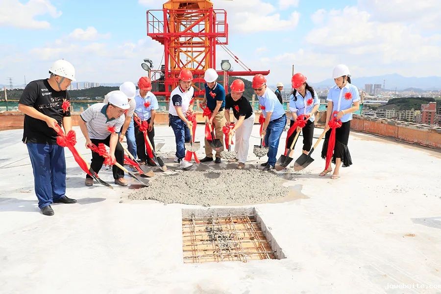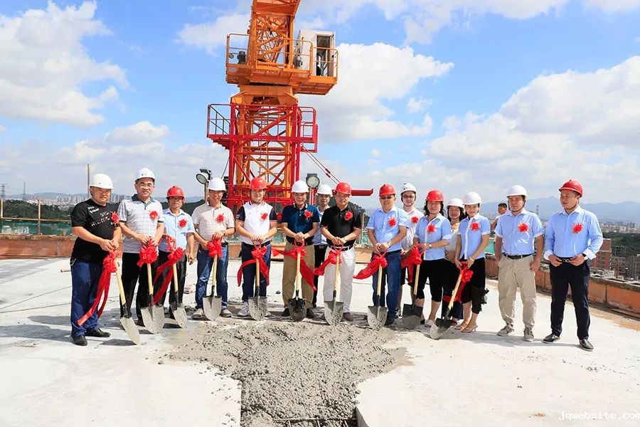 jqwebsite科技董事长肖董,总经理陈总,公司各部门经理,施工单位项目负责人赵总,袁总,设计单位代表胡总,监理公司钟工等20余人参加了封顶仪式!