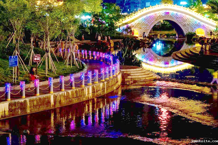 广西北流乡贤公园-河道发光路障石柱案例