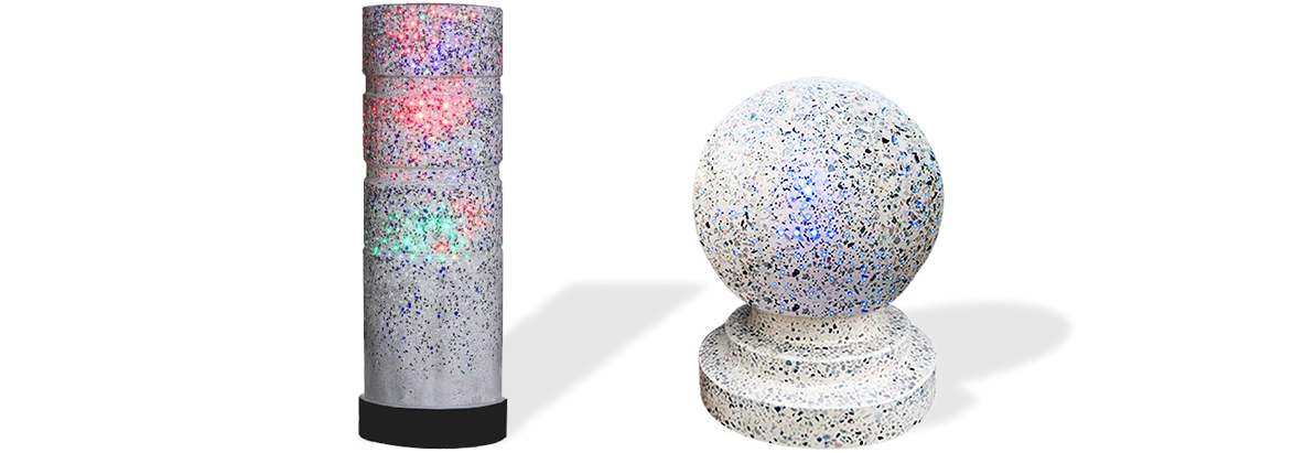 新型路障石材具有挡车功能,提升场所的形象和安全性,夜晚展现出特别绚丽的效果